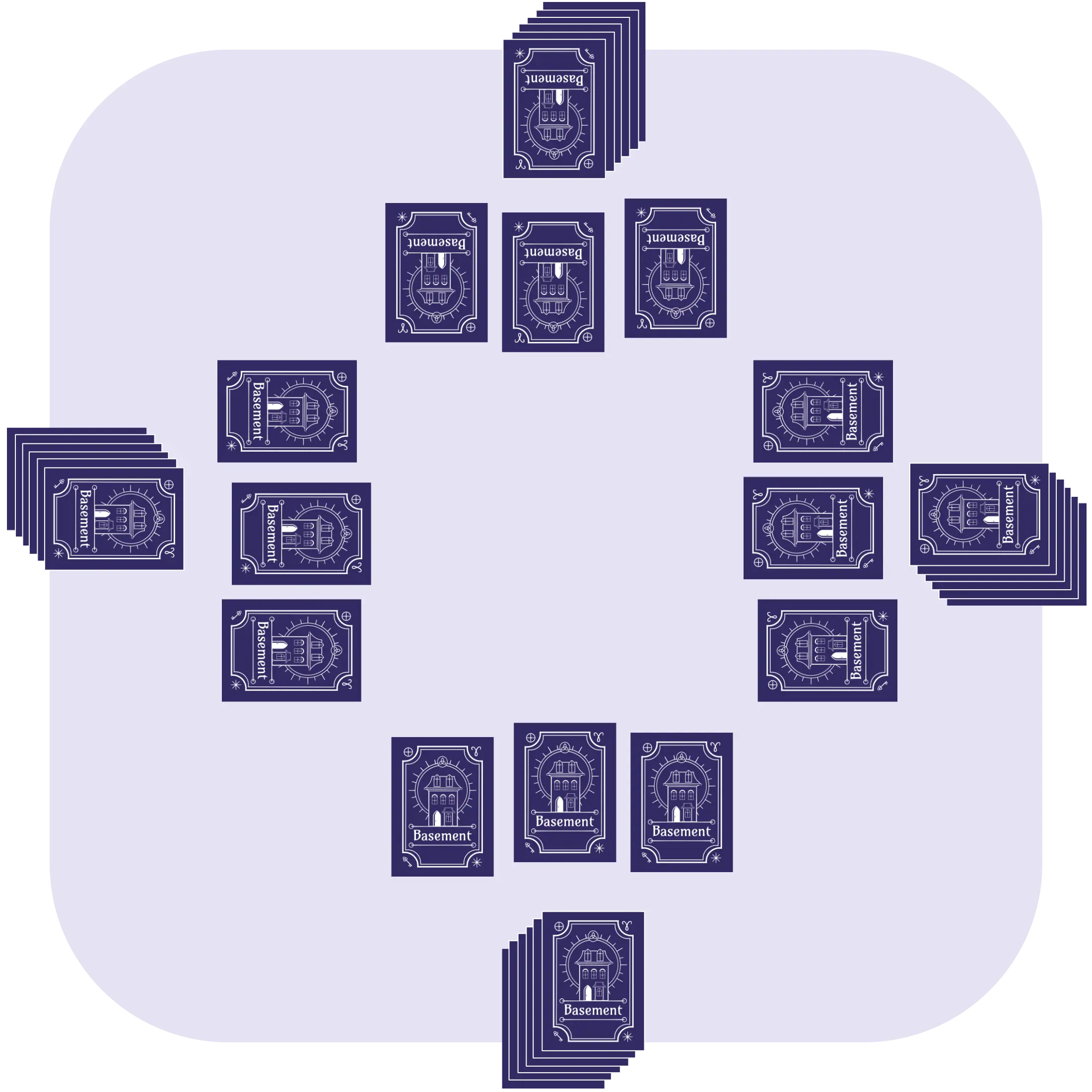 - Players pick up their hand and are dealt three more cards that remain face down. These cards are the Basement. (see Figure 1)